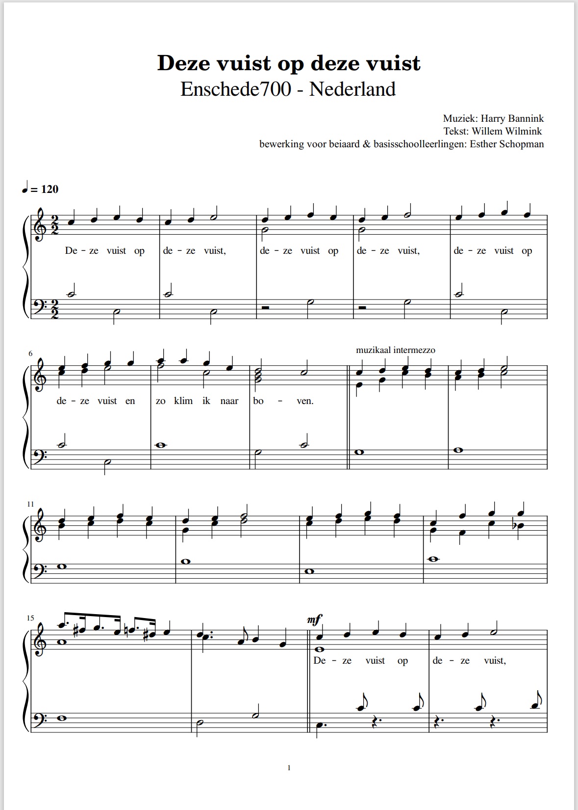 The song is known as a classic of Dutch children’s culture. The lyrics were written by Willem Wilmink and the music by Harry Bannink, both well-known Enschede natives. The piece was specially composed for the children’s program “De film van Ome Willem”, in which Edwin Rutten always sang this cheerful song as the closing number.