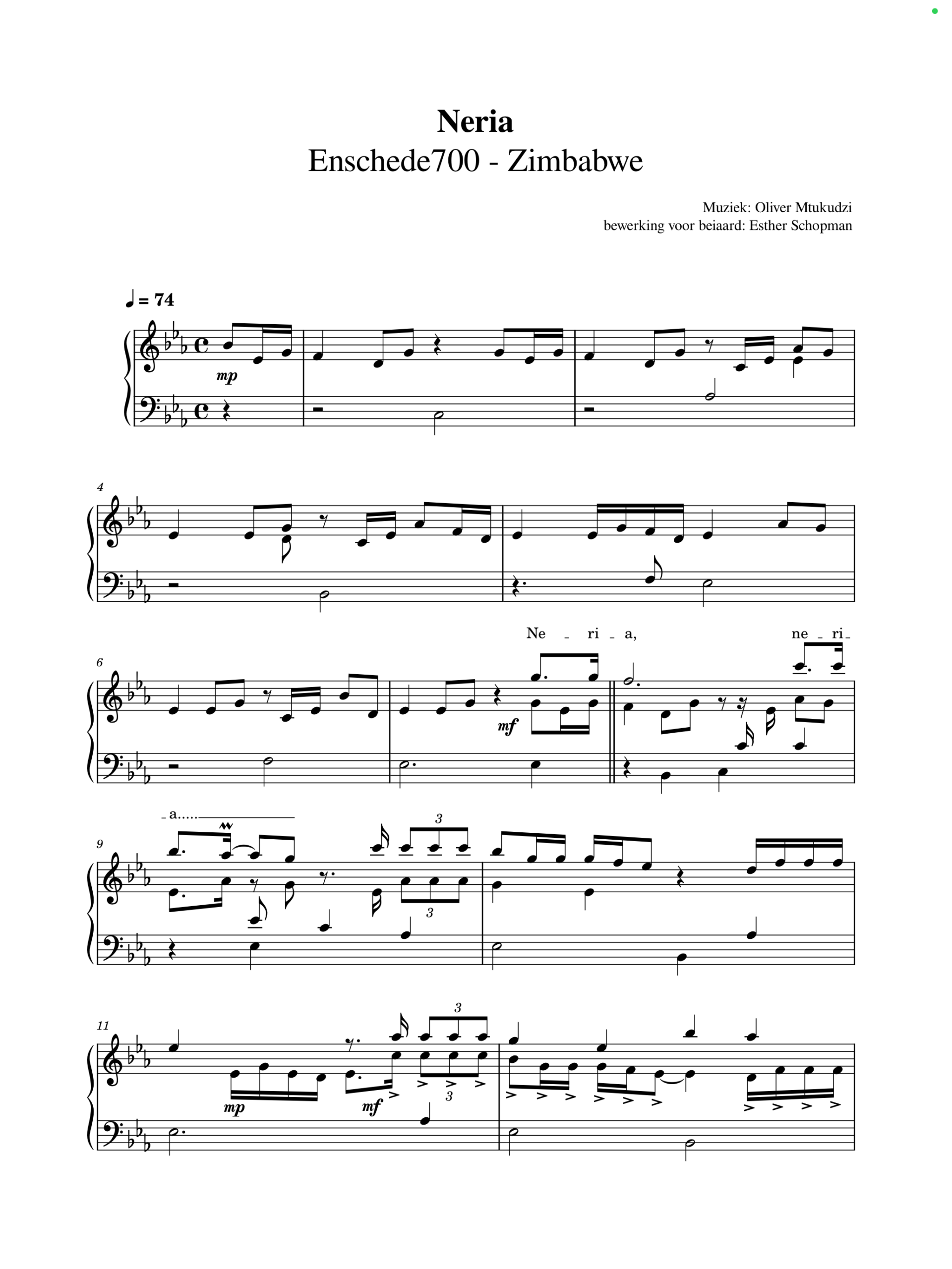 Het lied “Neria” van Oliver Mtukudzi vertelt het aangrijpende verhaal van een vrouw die na het overlijden van haar man alleen achterblijft. Ze wordt geconfronteerd met verdriet en onrecht, maar weigert op te geven. Mtukudzi zingt over haar moed, haar veerkracht en de kracht van vrouwen om ondanks tegenslagen verder te gaan. De tekst benadrukt solidariteit en medeleven. Het is een oproep aan de samenleving om vrouwen in moeilijke tijden te steunen.